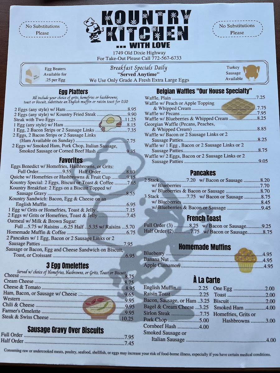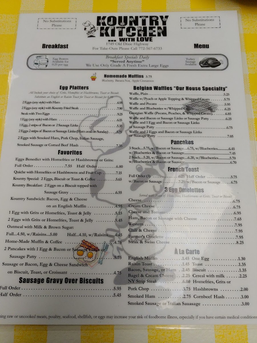 Welcome to Kountry Kitchen With Love, a charming eatery nestled in Vero Beach, Florida. This delightful restaurant serves up a menu that embraces hearty, soul-satisfying dishes, ensuring a memorable dining experience. For breakfast lovers, the standout Kountry Breakfast features two eggs over fluffy biscuits smothered in rich gravy, accompanied by crispy bacon for a truly filling start to the day.